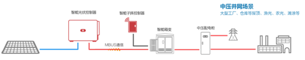 并网光伏发电系统是指太阳能电池利用太阳辐射能量产生的直流电(即太阳电池的“光生伏特效应”)通过并网光伏逆变器转换成交流电向电网输送的系统,其本质是利用太阳能进行发电的发电站。与煤、石油和天然气等传统能源进行发电的发电站系统相比,并网光伏发电系统具有可再生、无污染等优点。该光伏项目采用10kV等级高压并网方式,光伏系统包含一套Ebpay电气自主制造的10kV等级4000kVA预装式光伏升压站、7160块光伏组件、13组300kW大功率智能组串式光伏逆变器、一套10kV智能并网开关柜等组成,光伏组件通过光生伏特效应产生电流,然后通过组串式逆变器进行逆变,将直流电转换为交流电,最后就地升压至10kV接入电网。